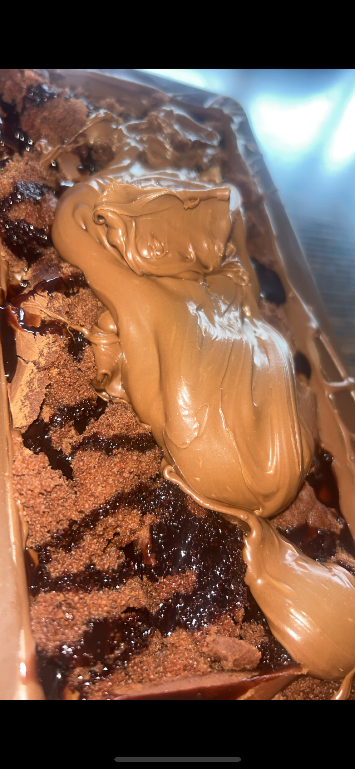 Milk chocolate bar filled with gooey chocolate cake, hazelnut chocolate spread and Hershey’s chocolate syrup.